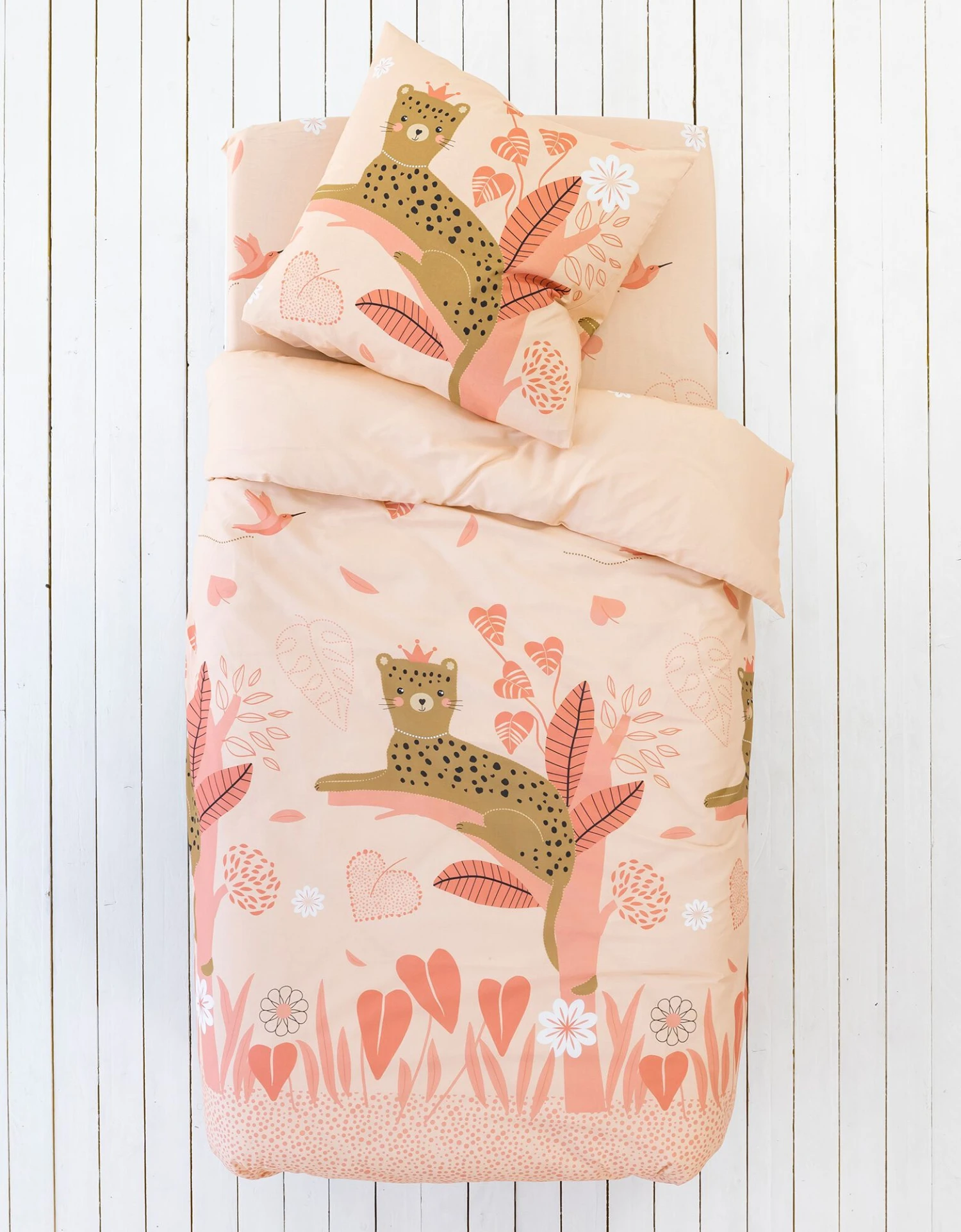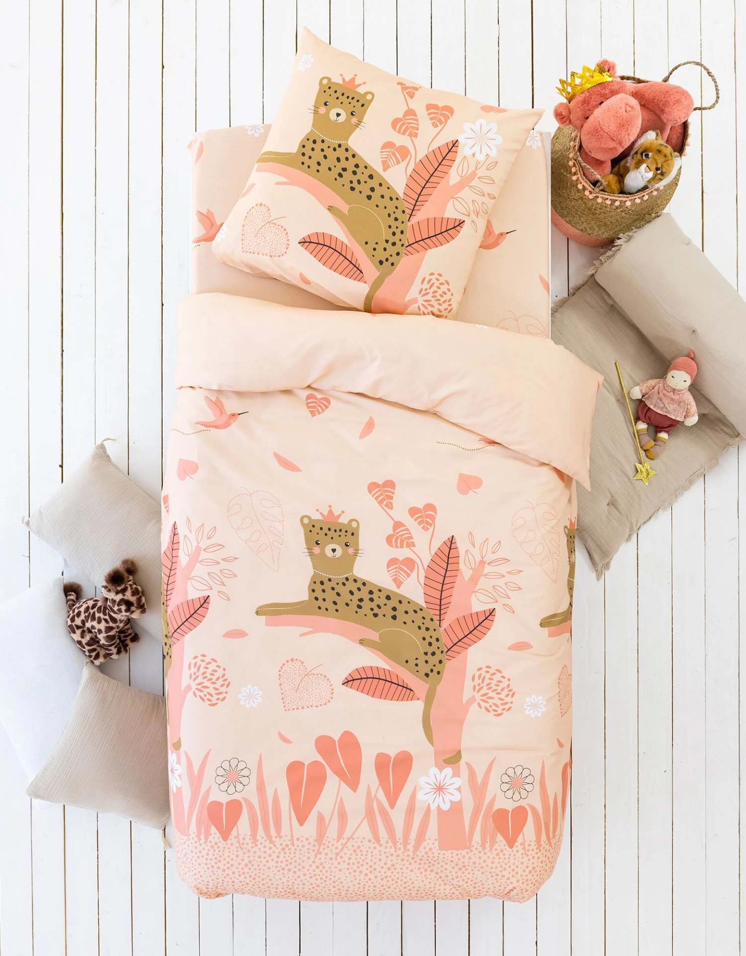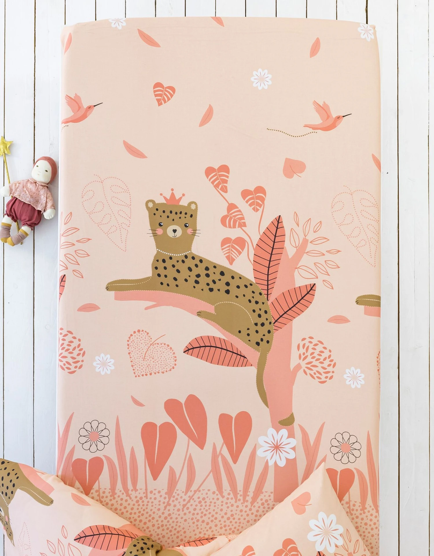 – Drap-housse (90×190 cm) : motif coordonné, coins bien emboîtants (bonnet 26 cm)
