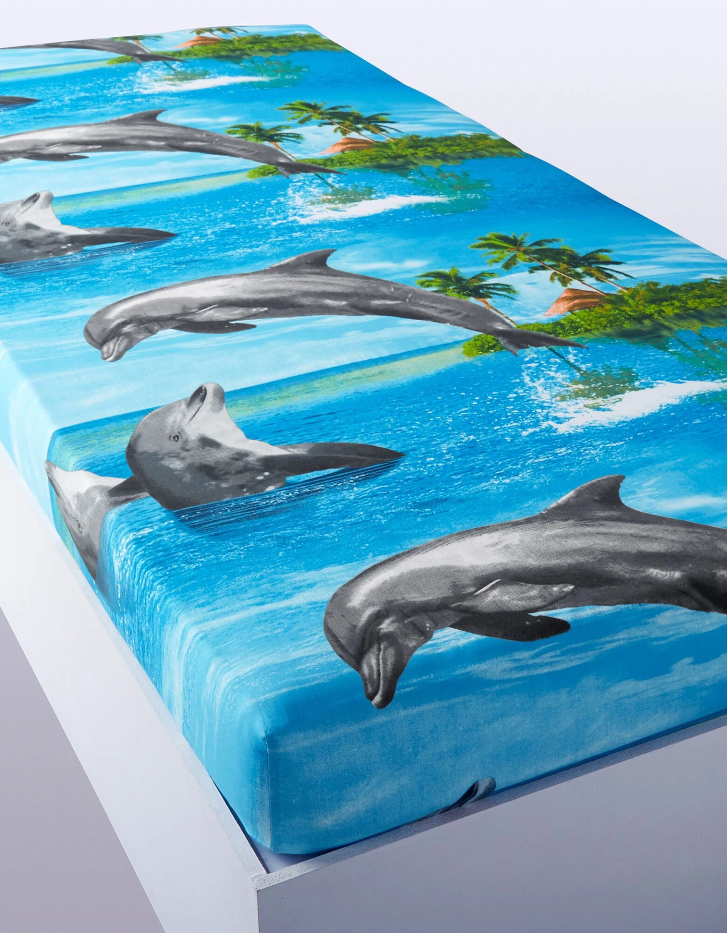 – Drap-housse : imprimé à effet placé. Coins bien emboîtants (bonnet 26 cm). Existe en grande taille (160×200 cm)