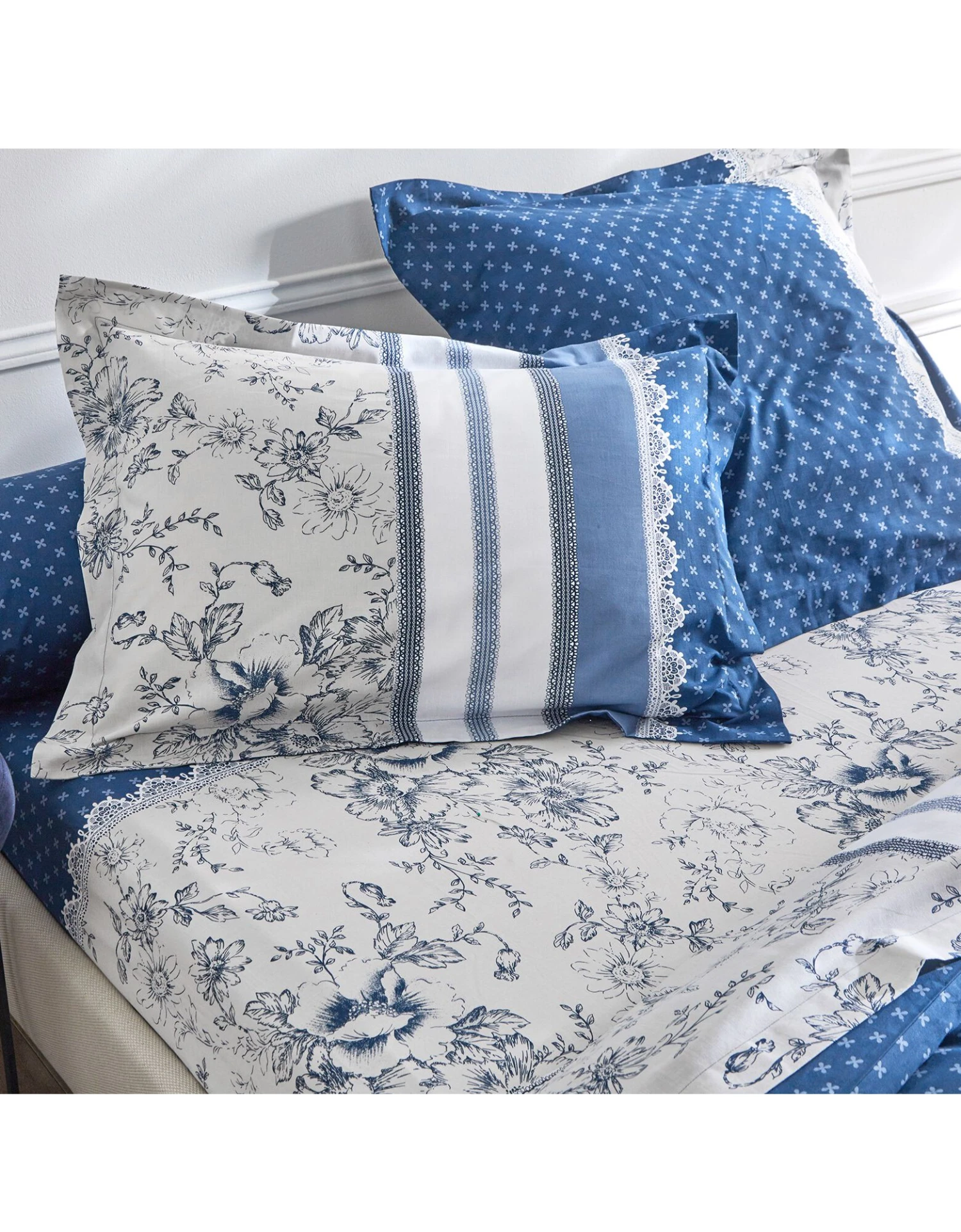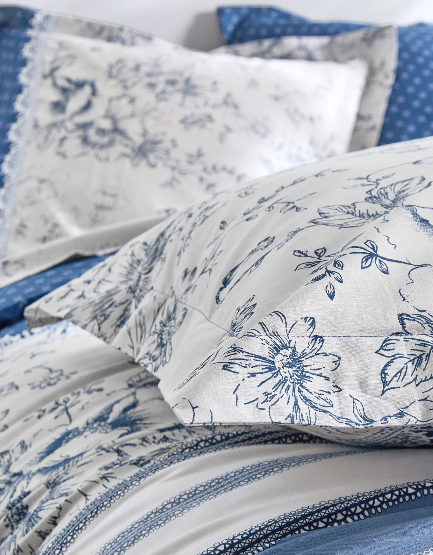 – Taie d’oreiller volant plat, à motif placé : 2 faces différentes