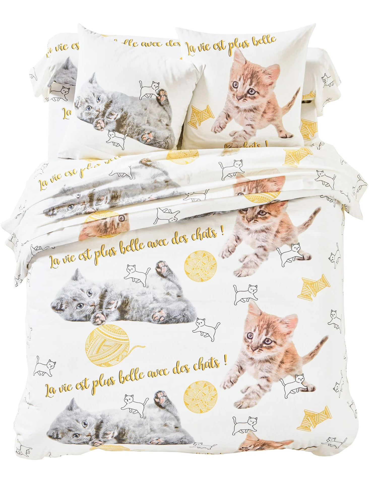 – Housse de couette : 2 faces identiques. Simple rabat pour bien border. Existe en grande taille (240×220 cm).