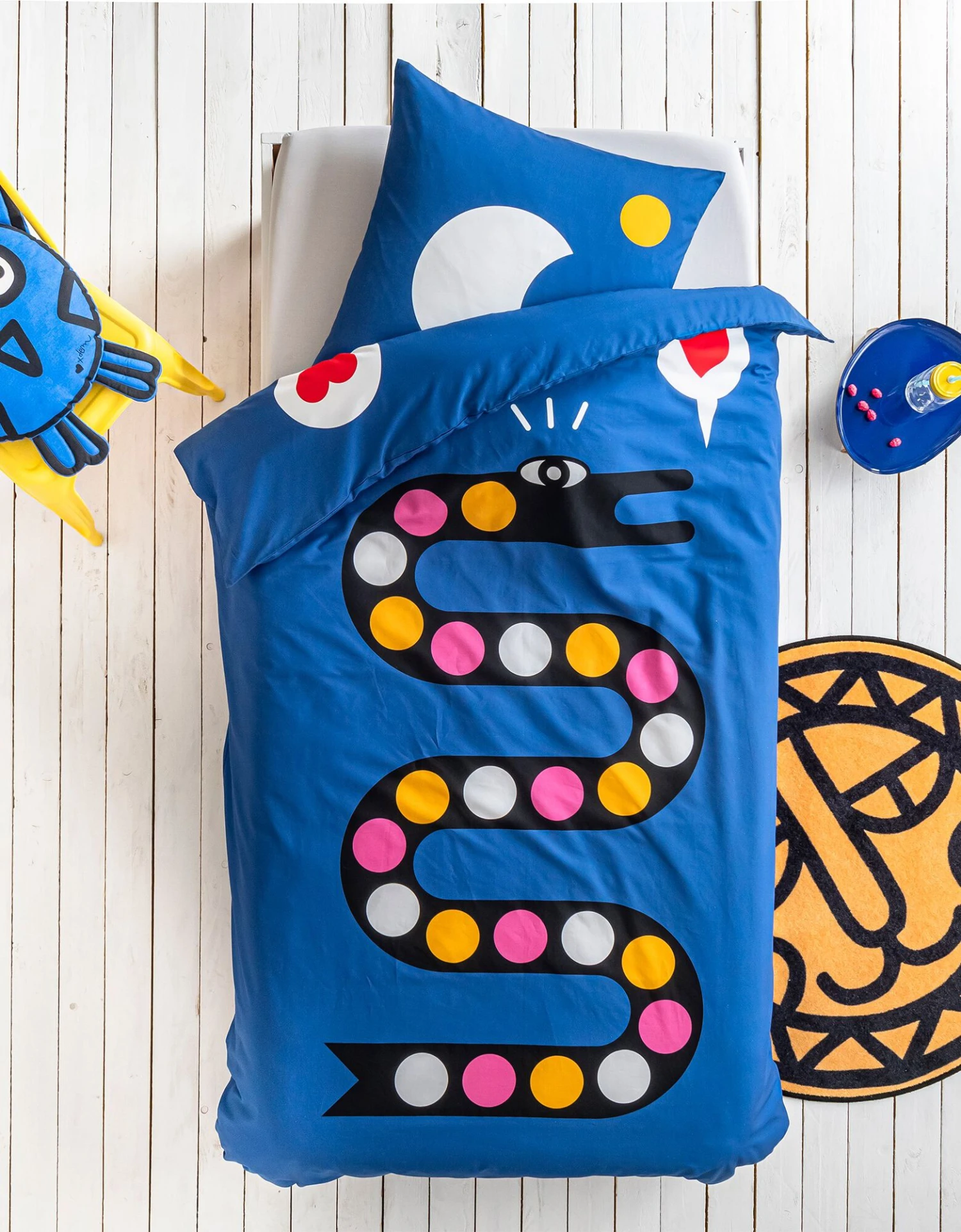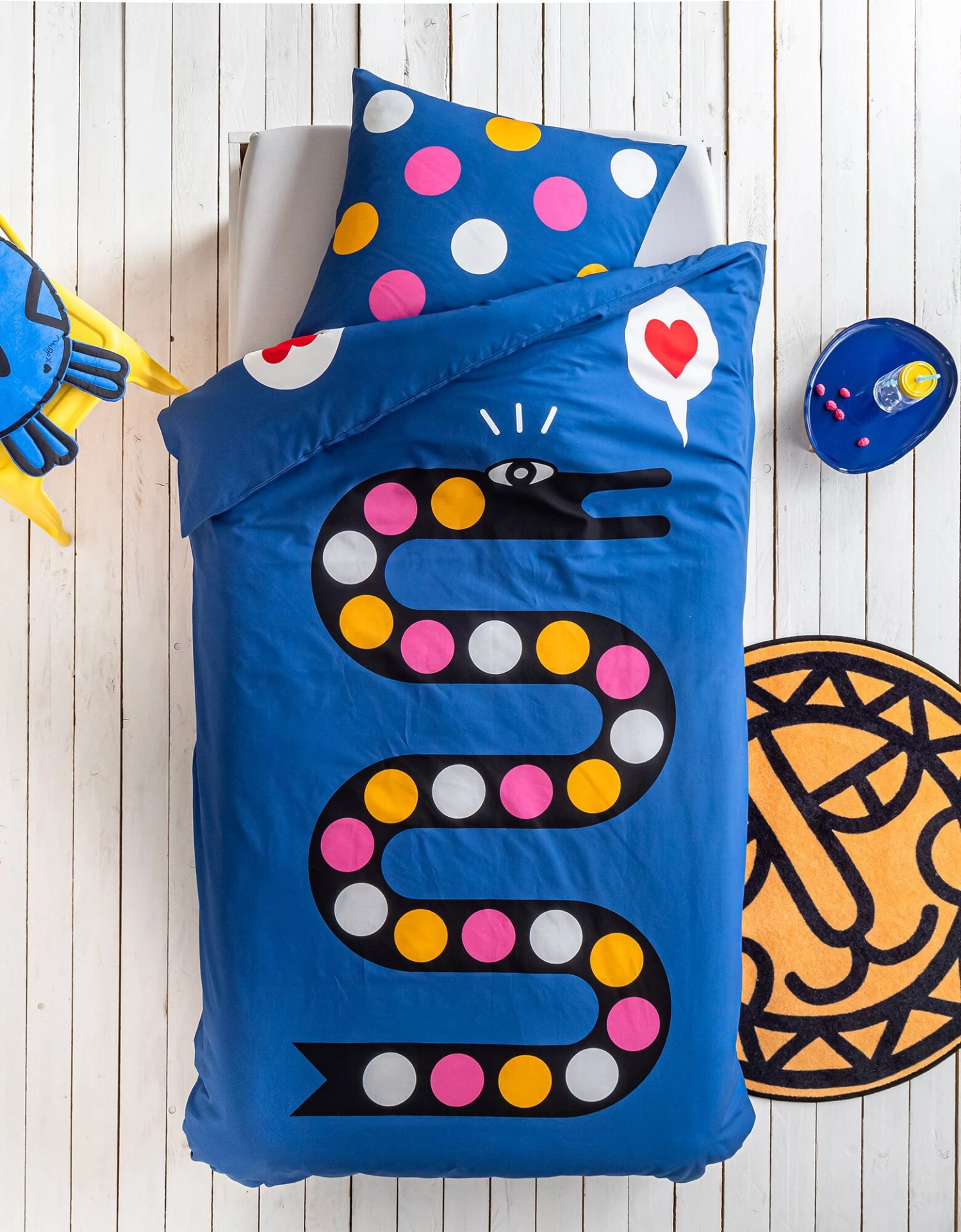 – Housse de couette (140×200 cm) , forme bouteille pour bien border : 2 faces identiques, motif placé