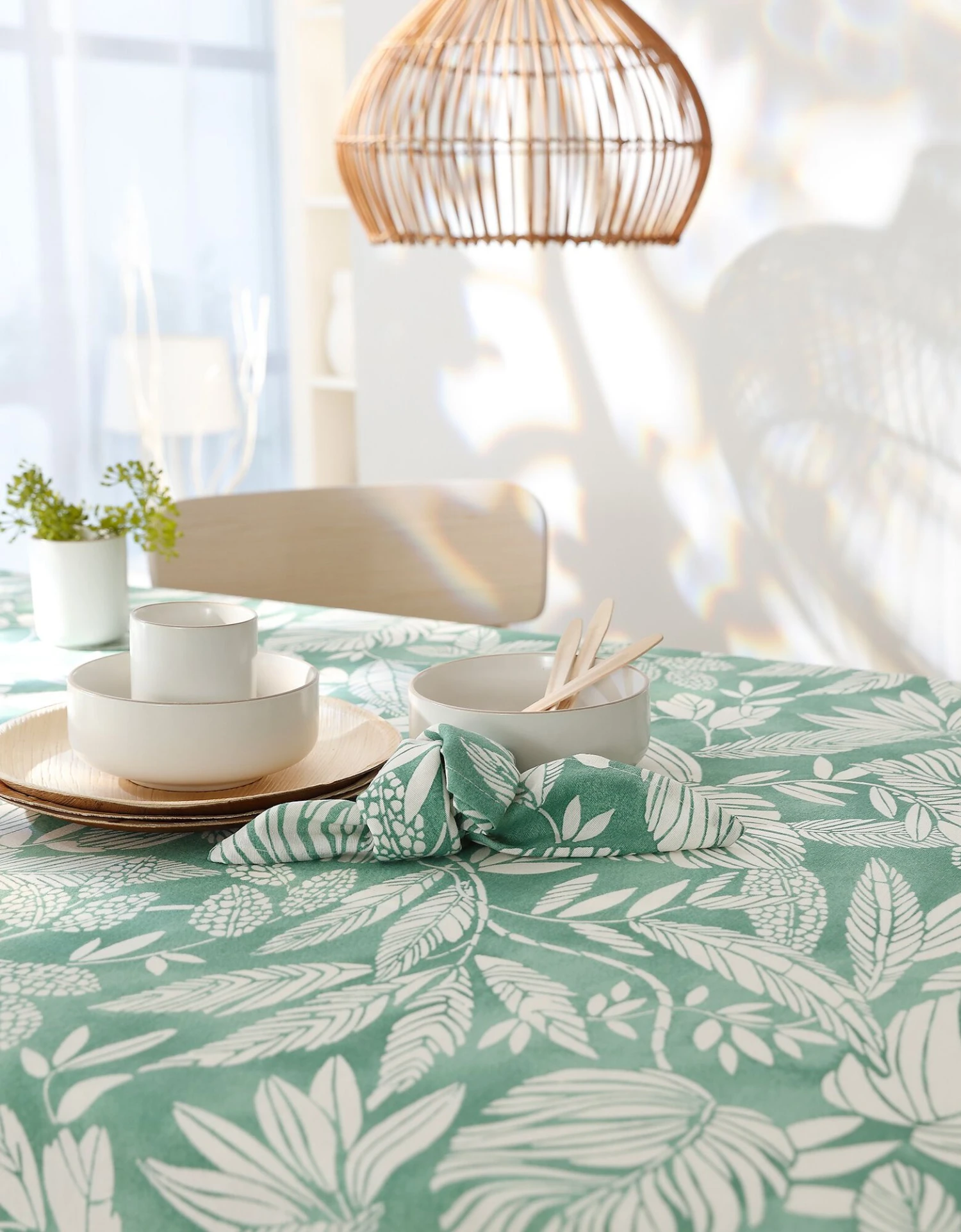 – Pour compléter votre déco, pensez aux galettes de chaise et tabliers assortis vendus sur blancheporte.fr