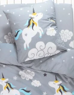 – Housse de couette forme bouteille pour bien border, 2 faces différentes : 1 face unie, 1 face imprimé continu