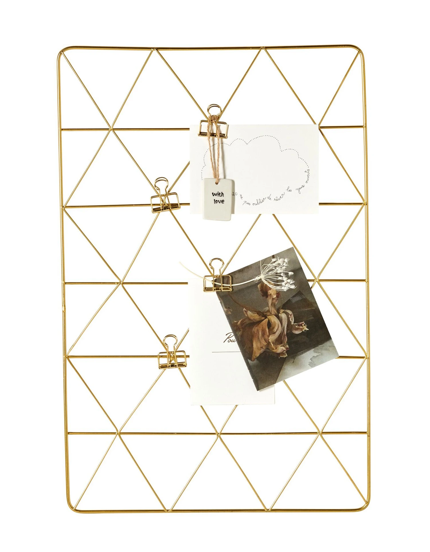 – 4 pinces amovibles pour y accrocher cartes, photos,…