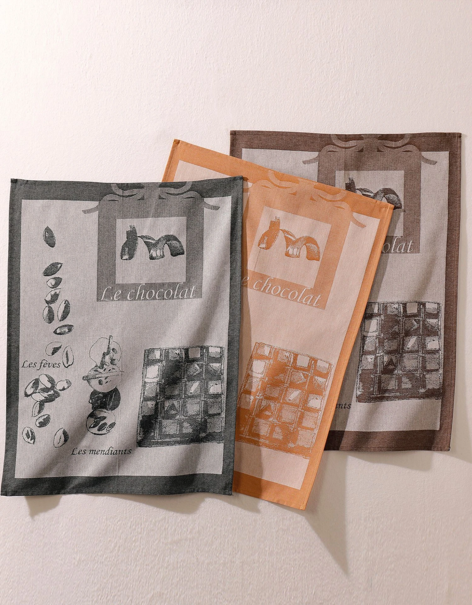 ∙ Lot de 3 torchons en jacquard motifs gourmand : ocre + marron + gris
