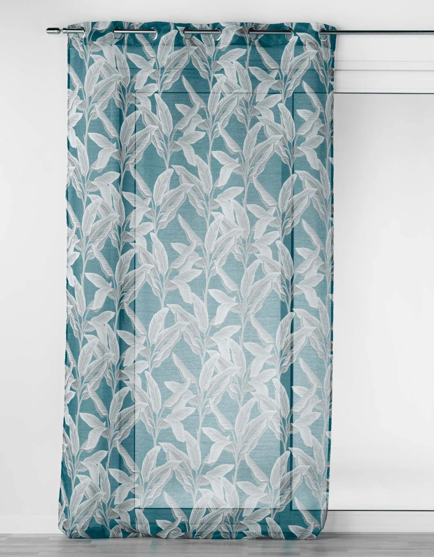 – Voilage imprimé tropical en voile sable
